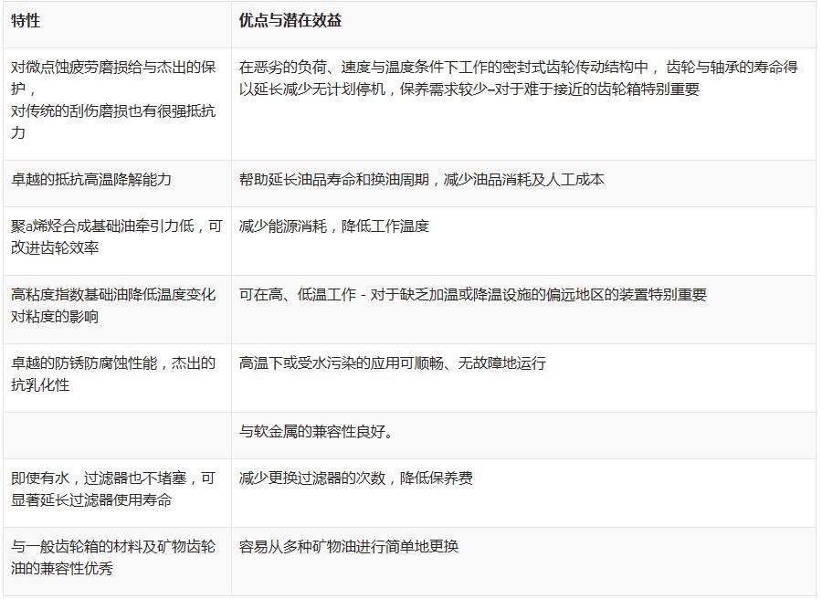合成基础油的无蜡本质使矿物油产品的低温流动性无法以之抗衡;对於偏远地区、环境温度低的应用,这是重要的长处。美孚齿轮油 SHC XMP系列润滑油的其他优点如下: